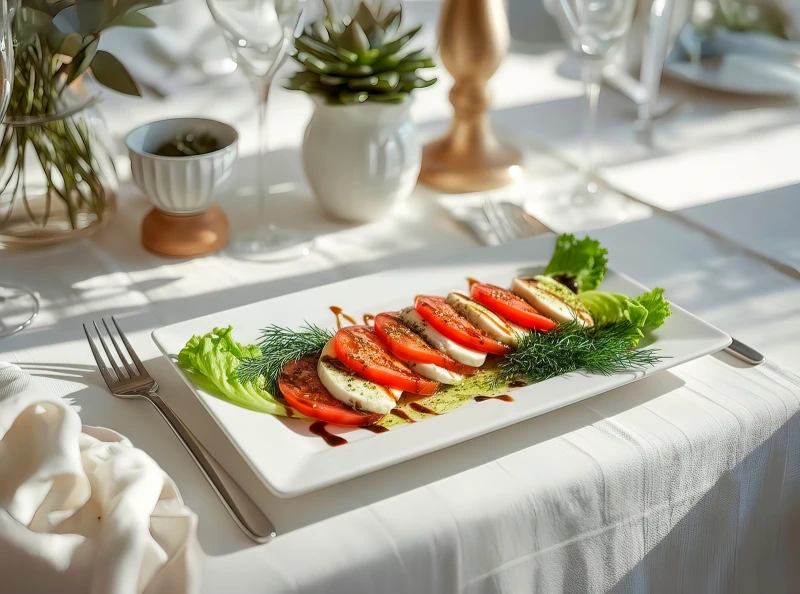 Изысканная итальянская закуска, воплощающая дух средиземноморской кухни: лаконичность ингредиентов, яркость цвета и гармония вкусов. Капрезе — это не просто блюдо, а настоящий визуальный и вкусовой символ Италии, где каждый компонент играет свою роль в общей композиции.